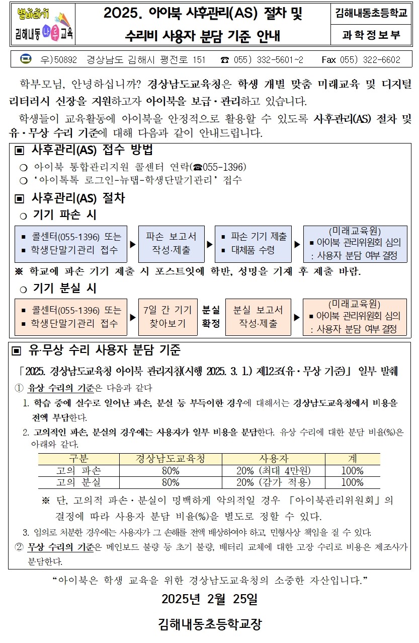2025. 아이북 사후관리(AS) 절차 및 수리비 사용자 분담 기준 안내